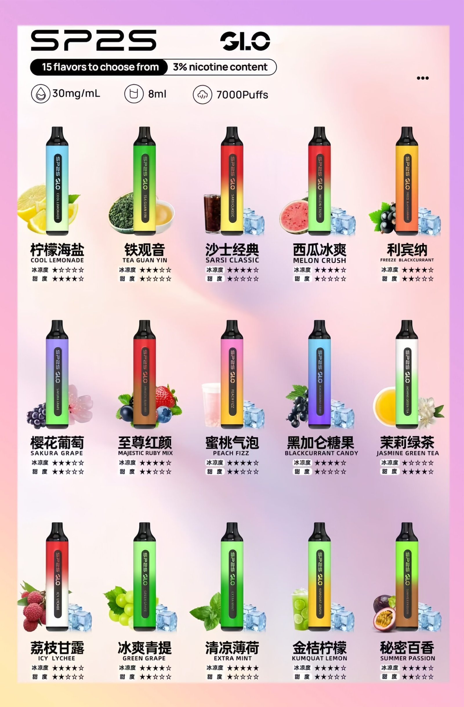 - 尼古丁含量:3%(30mg/mL)
