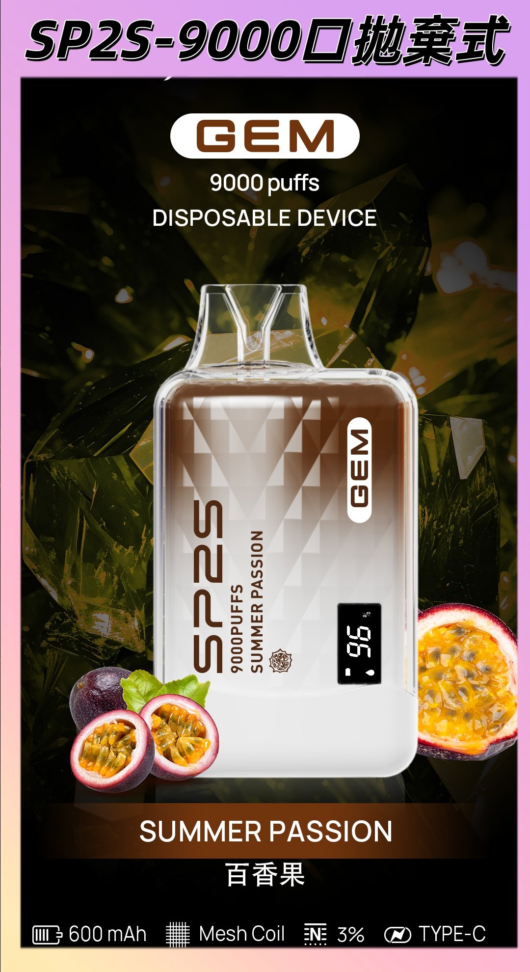 【百香果】SP2S拋棄式9000口 SP2可充電式一次性電子煙